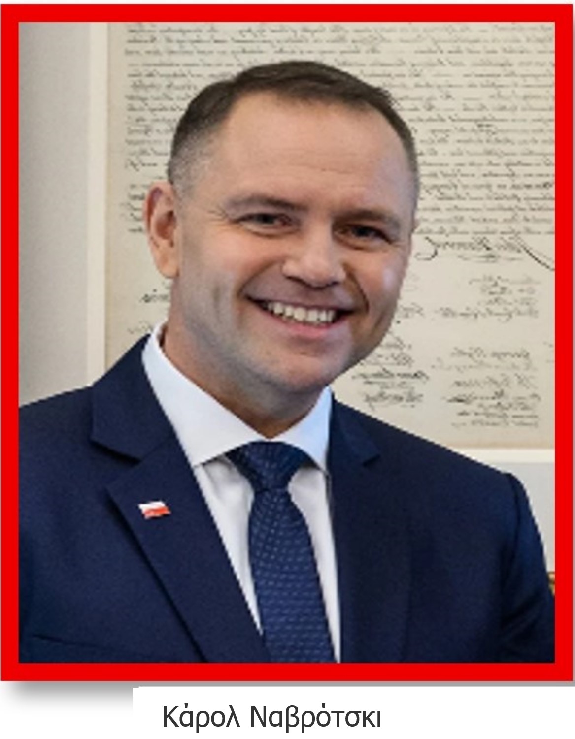 [2] Ο Πρόεδρος της Πολωνίας Κάρολ Ταντέους Ναβρότσκι (1973) έχει σπουδάσει ιστορία και από το 2025 υπηρετεί ως ο 17ος πρόεδρος της χώρας του. Από το 2021 έως το 2025, ήταν επικεφαλής του Ινστιτούτου Εθνικής Μνήμης. Υπηρέτησε επίσης ως διευθυντής του Μουσείου του Δεύτερου Παγκοσμίου Πολέμου στο Γκντανσκ από το 2017 έως το 2021.