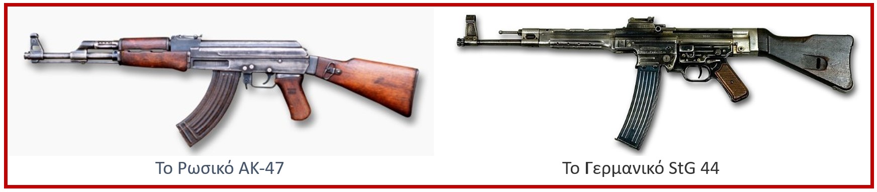 [1] Το ΑΚ-47 είναι τυφέκιο εφόδου που λειτουργεί δια πιέσεως των αερίων και χρησιμοποιεί φυσίγγια 7,62 χιλ (διάμετρος). Κατασκευάσθηκε από τον Μιχαήλ Καλάσνικοφ το 1947, στη Σοβιετική Ένωση. Η ονομασία ΑΚ-47 Καλάσνικοφ, ή απλά ΑΚ προέρχεται από τις λέξεις, Αυτόματο Καλάσνικοφ μοντέλο 1947. Χρησιμοποιείται από πολλούς στρατούς παγκοσμίως, θεωρούμενο ως το πλέον θανατηφόρο τυφέκιο. Μόνο στη ΕΣΣΔ κατασκευάσθηκαν 100 εκατομμύρια ΑΚ-47. Το ρωσικό τυφέκιο έχει πολλές ομοιότητες με το γερμανικό ο StG 44 (Sturmgewehr 44, "τυφέκιο εφόδου 44"), που κατασκευάσθηκε το 1944 κατά την διάρκεια του Β΄ Παγκοσμίου Πολέμου και το οποίο θεωρείται το πρώτο τυφέκιο εφόδου της ιστορίας. Είναι γνωστό επίσης με το όνομα "MP 43" και "MP 44" (Maschinenpistole 43 και Maschinenpistole 44, αντίστοιχα). Κατασκευαστής του ήταν ο Γερμανός Χούγκο Σμάισερ (1884–1953) ένας από τους πιο γνωστούς σχεδιαστές όπλων στην Ευρώπη.