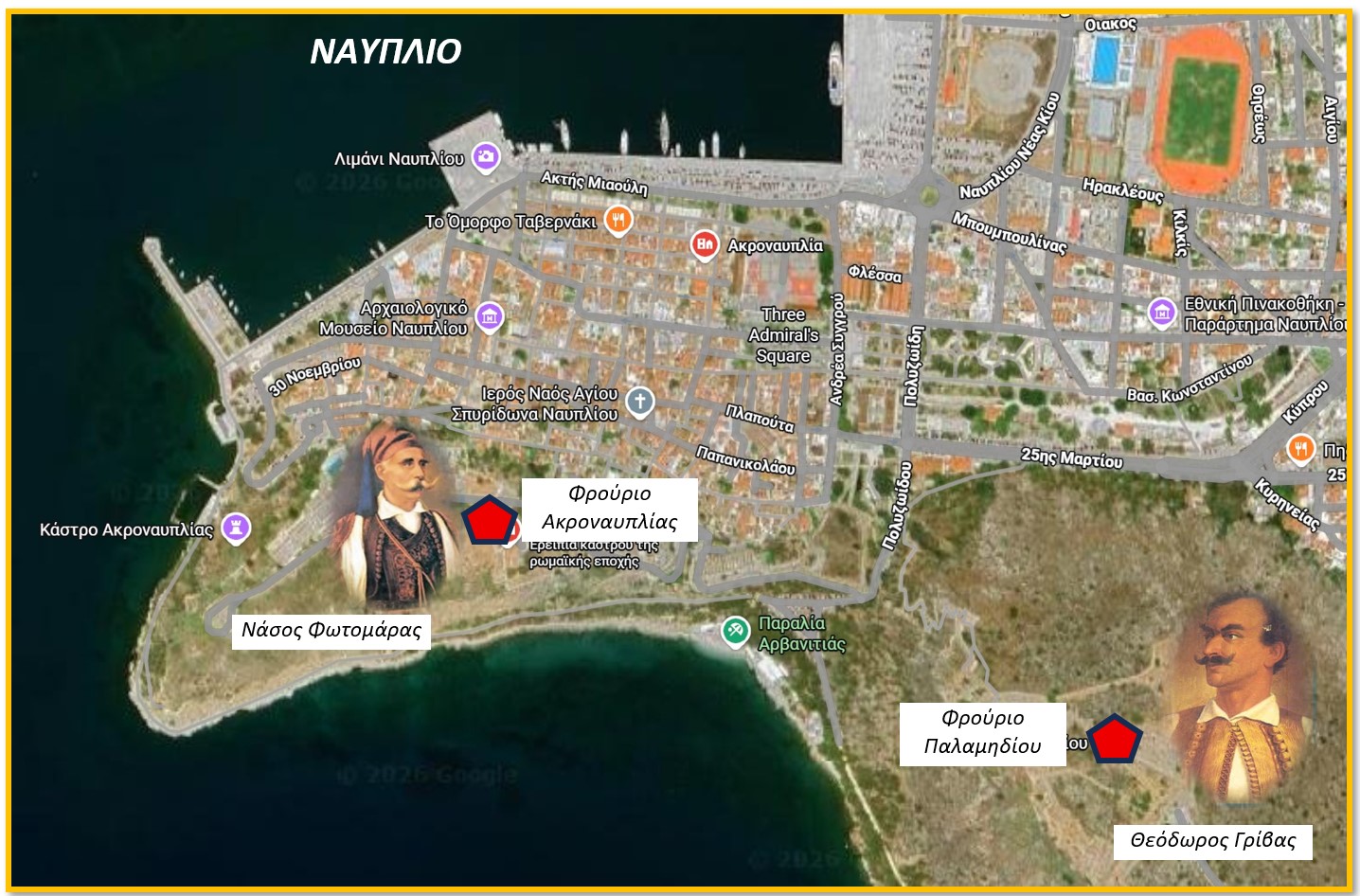 [5] Ο Λάμπρος Νάκος ή Νάκου (1782 Λιβαδειά-1856) υπήρξε μέλος της Φιλικής Εταιρείας και στην συνέχεια συμμετείχε ενεργά στην επανάσταση. Εκλέχθηκε κατ’ επανάληψη πληρεξούσιος της γενέτειράς του.