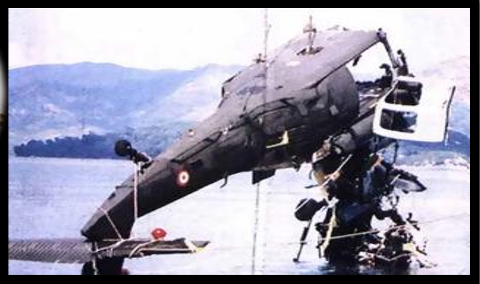 Την 05:01 το ελικόπτερο κατέπεσε στη θάλασσα με αποτέλεσμα τον θανάσιμο τραυματισμό, του κυβερνήτου Υποπλοιάρχου Χριστοδούλου Καραθανάση, του συγκυβερνήτου Υποπλοιάρχου Παναγιώτη Βλαχάκου και του χειριστού ραντάρ Αρχικελευστού Έκτορος Γιαλοψού.