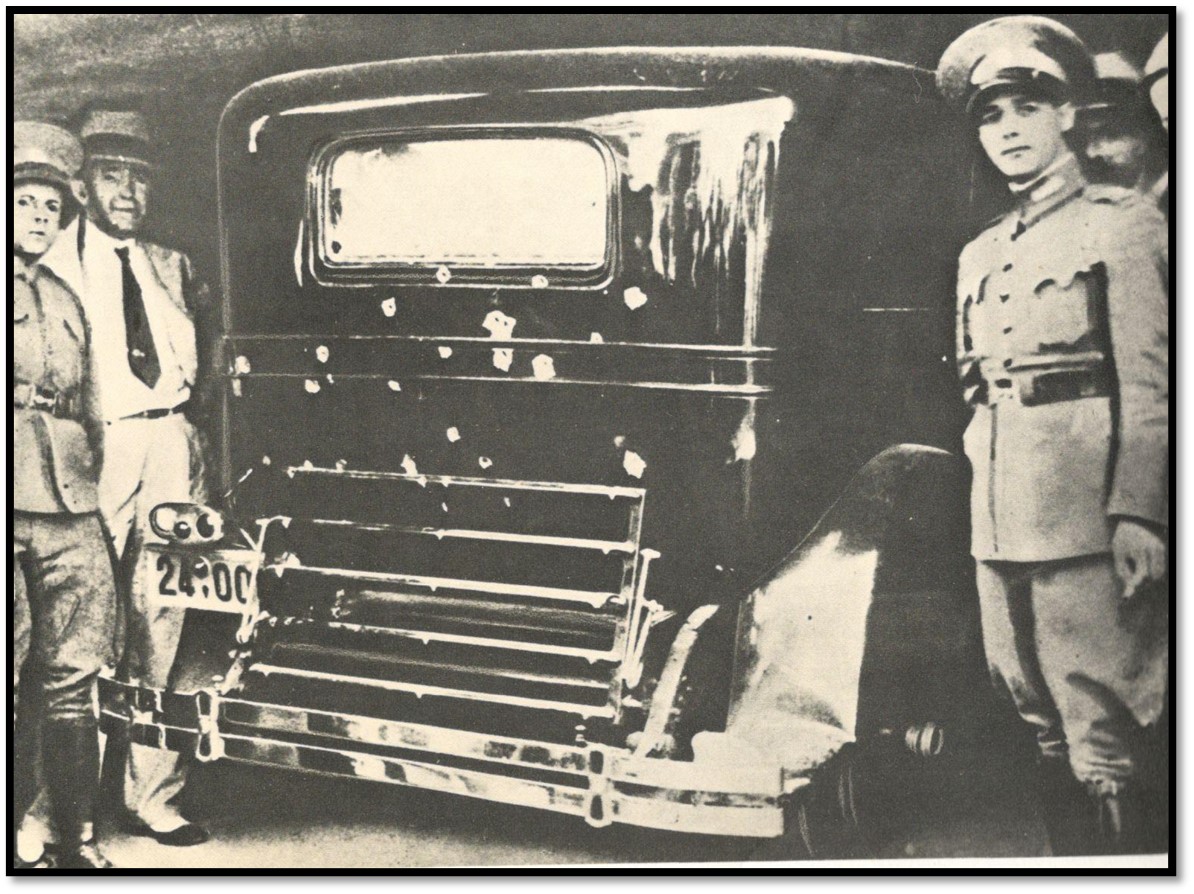 Το όχημα του Ελευθερίου Βενιζέλου χτυπημένο από τις σφαίρες. Σήμερα βρίσκεται στην οικία-μουσείο του Βενιζέλου στη Χαλέπα Χανίων.