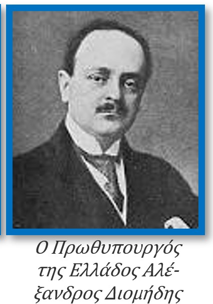 [3] Αλέξανδρος Διομήδης (1875-1950), γεννήθηκε στην Αθήνα με καταγωγή από τις Σπέτσες. Υπήρξε πολιτικός, πανεπιστημιακός, δικηγόρος, οικονομολόγος, συγγραφέας. Διετέλεσε Διοικητής της Εθνικής Τραπέζης και πρώτος Διοικητής της Τραπέζης της Ελλάδος. Διαδέχθηκε τον Σοφούλη στην πρωθυπουργία μετά το θάνατό του. Κατείχε την θέση του αντιπροέδρου της κυβερνήσεως.