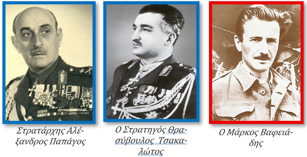 [15] Ο Μάρκος Βαφειάδης (Ερζερούμ Μικράς Ασίας 1906-Αθήνα 1992) υπήρξε ηγετικό στέλεχος του ΚΚΕ και επικεφαλής του «Δημοκρατικού Στρατού», μέχρι το 1949, οπότε και απομακρύνθηκε από τον Ζαχαριάδη. Στην συνέχεια διαγράφηκε από μέλος του ΚΚΕ και εξορίσθηκε στην Σοβιετική Ένωση. Επέστρεψε στην Ελλάδα το 1983 και εξελέγη βουλευτής επικρατείας με το ΠΑΣΟΚ.