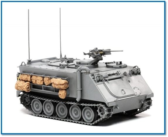 [12] Το Μ 113 είναι ερπυστριοφόρο Τεθωρακισμένο Όχημα Μεταφοράς Προσωπικού (ΤΟΜΠ), Αμερικανικής κατασκευής και προελεύσεως, το οποίο πρωτοεμφανίσθηκε το 1960 και παράγονταν μέχρι το 2007. Έχει πλήρωμα 2 ανδρών και μεταφορική ικανότητα 10 έως 12 στρατιωτών. Είναι εφοδιασμένο με κινητήρα 215 ίππων, αναπτύσσει ταχύτητα 64 χλμ/ώρα και έχει αυτονομία 550 χλμ. Το βάρος του είναι 12,3 τόνους, το μήκος 4,8 μέτρα, το ύψος 2,2 μ και το πλάτος 2,6 μ, Είναι κατασκευασμένο από αλουμίνιο και έχει τη δυνατότητα διαβάσεως υδάτινων κωλυμάτων. Κατασκευάσθηκαν συνολικά 80.000 μονάδες.