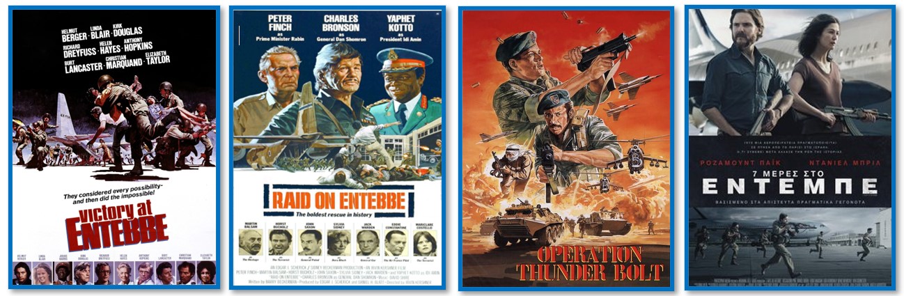 - «Raid on Entebbe (Επιδρομή στο Eντέμπε, 1977)». Αμερικανική παραγωγή με τους Τσαρλς Μπρόνσον και Πίτερ Φιντς, η οποία προβλήθηκε αρχικά στην τηλεόραση και στη συνέχεια στους κινηματογράφους.