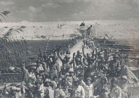 Αιγύπτιοι στρατιώτες πανηγυρίζουν μετά την επιτυχή ζεύξη της διώρυγας του Σουέζ.