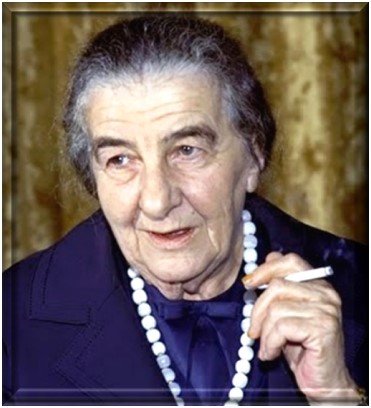 [4] Η Γκόλντα Μεΐρ (1888-1978) Γεννήθηκε στο Κίεβο της Ουκρανίας ξεκίνησε ως δασκάλα και στην συνέχεια στράφηκε προς την πολιτική. Υπήρξε μία εκ των ιδρυτών του κράτους του Ισραήλ. Διατέλεσε υπουργός Εργασίας, υπουργός Εξωτερικών και 4η πρωθυπουργός του Ισραήλ, από τις 17 Μαρτίου 1969 έως τις 3 Ιουνίου 1974. Το πιστεύω της συνοψίζεται στην φράση: «Υπάρχει μόνο ένα πράγμα που ελπίζω να δω πριν πεθάνω και αυτό είναι ότι ο λαός μου δεν πρέπει πλέον να χρειάζεται εκδηλώσεις συμπάθειας».