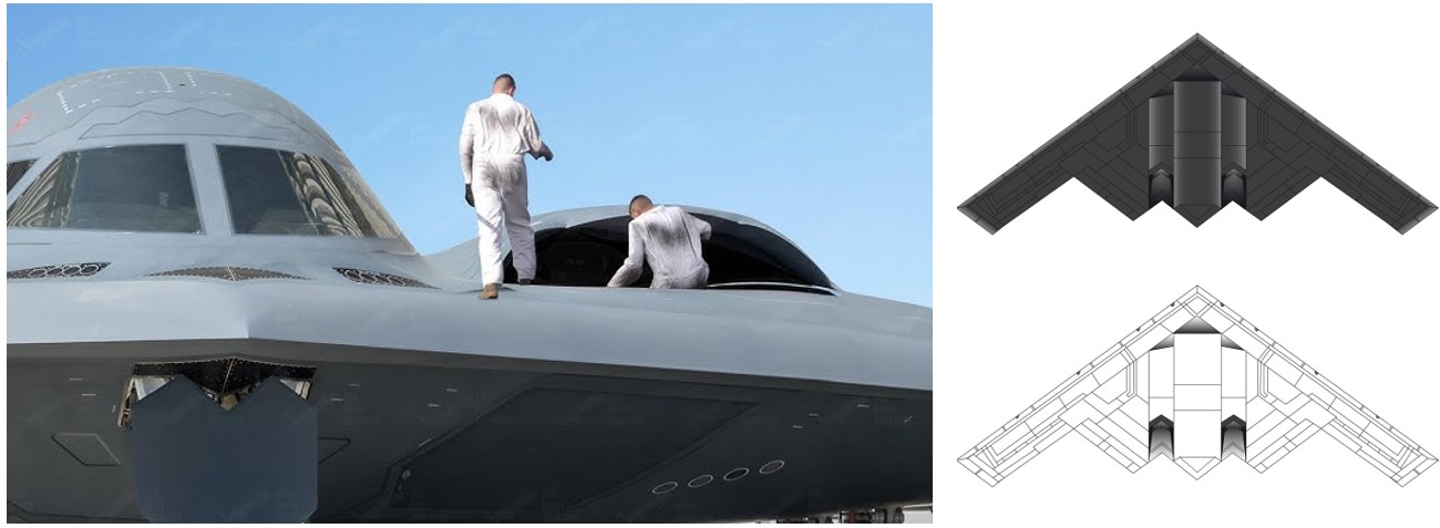 [9] Το αμερικανικό στρατηγικό υποηχητικό (ταχύτητα μικρότερη από 1.200 χλμ/ώρα) βομβαρδιστικό Β-2 Spirit (πνεύμα), τεχνολογίας χαμηλού ηλεκτρονικού αποτυπώματος (stealth), σχεδιάσθηκε και παράγεται από την αμερικανική εταιρεία Northrop Grumman από το 1988 έως το 2000. Κατασκευάσθηκαν συνολικά 21 αεροσκάφη με κόστος 2,13 δις δολ. το ένα. Δύναται να μεταφέρει θερμοπυρηνικές και συμβατικές βόμβες, χωρίς να ανιχνεύεται από τα εχθρικά ραντάρ. Η αυτονομία πτήσεως (χωρίς ανεφοδιασμό) είναι 11.000 χλμ, σε ύψος μέχρι 15.000 μέτρα.