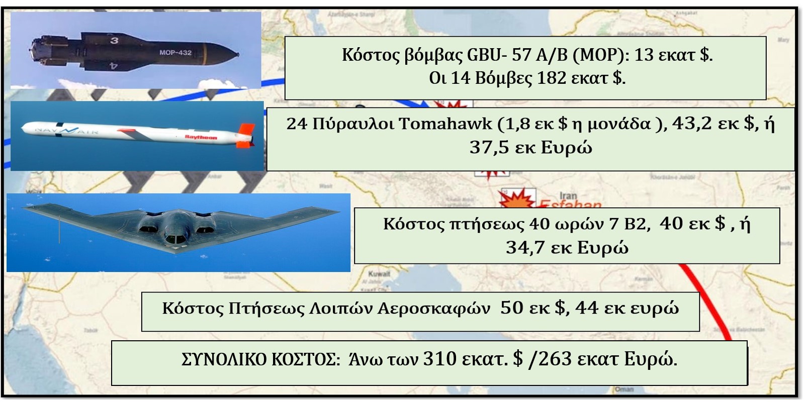Αμέσως μετά την επιχείρηση ο Πρόεδρος των ΗΠΑ Ντόναλντ Τραμπ δήλωσε: «Οι βασικές εγκαταστάσεις εμπλουτισμού ουρανίου έχουν καταστραφεί εντελώς», ενώ χαρακτήρισε την επιχείρηση ως «θεαματική στρατιωτική επιτυχία». Το Ισραήλ από τη πλευρά του ανακοίνωσε: «Η πυρηνική εγκατάσταση του Φορντό υπέστη σημαντικές ζημιές, αλλά δεν καταστράφηκε και ότι είναι πιθανόν το Ιράν να μετέφερε σε άλλη τοποθεσία το εμπλουτισμένο ουράνιο πριν το χτύπημα [10]». Το Ιράν σε απάντηση της Αμερικανικής επιθέσεως εκτόξευσε την 22α Ιουνίου 6 βαλλιστικούς πυραύλους κατά της Αμερικανικής Βάσεως Αλ Ουντέϊντ (Al Udeid) στο Κατάρ. Για το «Μεταμεσονύκτιο Σφυρί», οι ΗΠΑ ξόδεψαν άνω των 310 εκατ. δολάρια (263 εκατ. Ευρώ), όπως φαίνεται στο παρακάτω πίνακα.